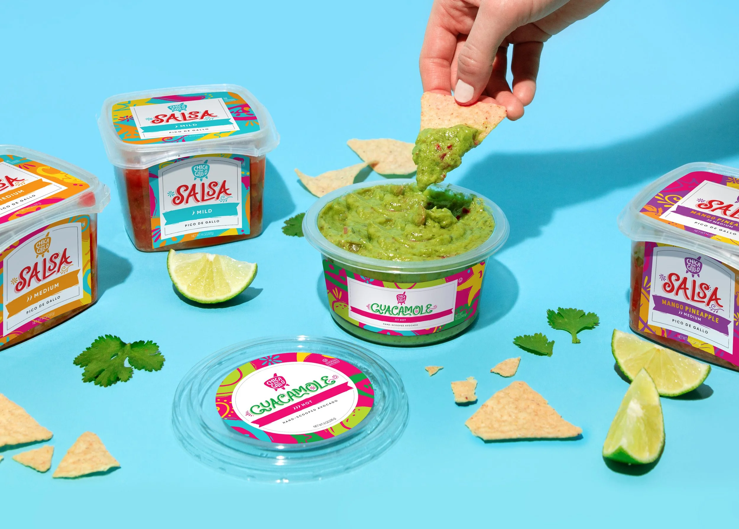 A Fiesta-Inspired Brand Identity → We transformed the packaging and brand world into a vibrant, feel-good celebration that gave consumers an instant mood boost. Because no Mexican-themed party is complete without salsa and guacamole.